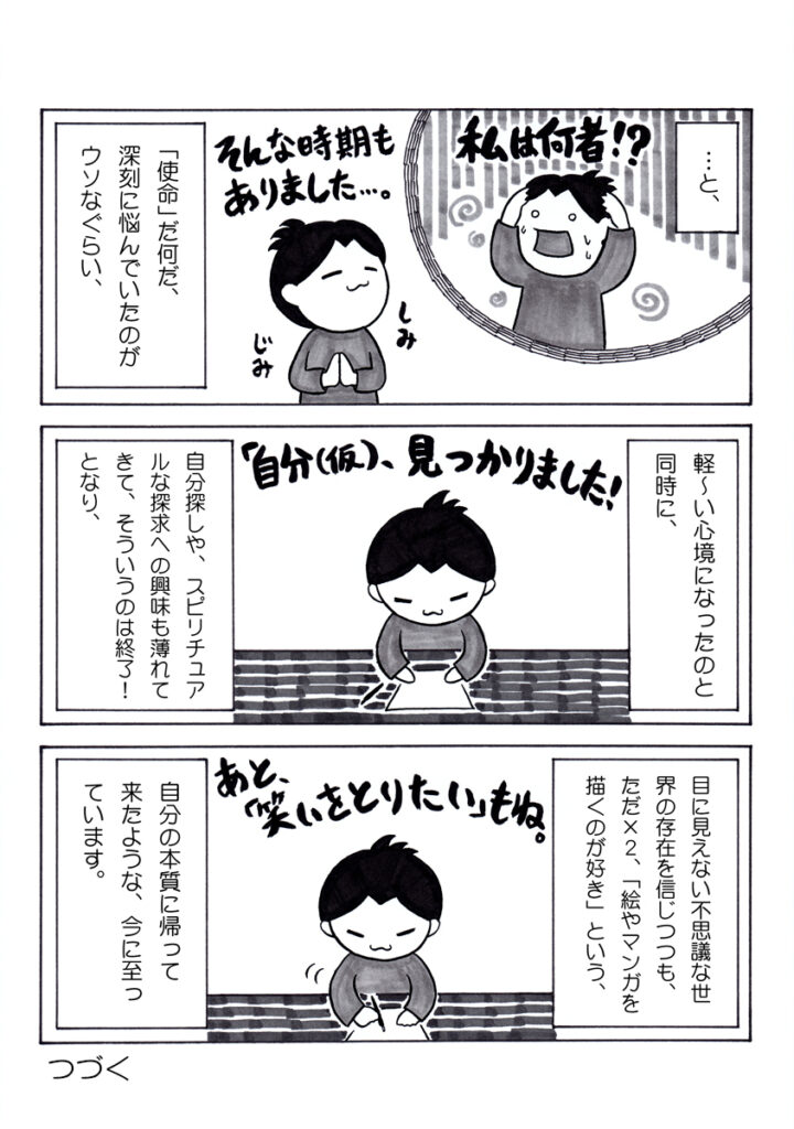 これからのことや、スピリチュアルの世界を一周回ってきた感想などのまとめ回に入っております。